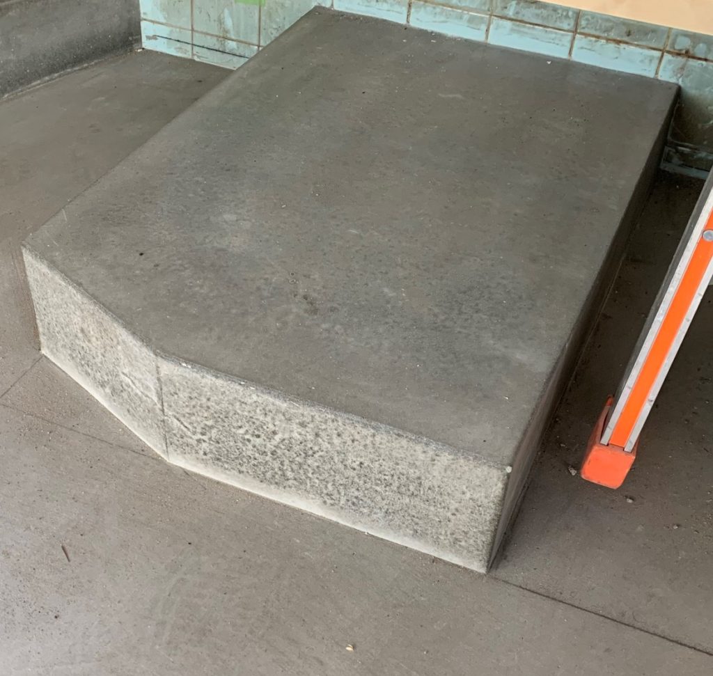 型枠を組みモルタルを流し込んである程度固まるまで放置です。型枠に面する立ち上がり面が固まり、崩れないほどに固まったなら型枠をそっと外して立ち上がり面をコテで押さえます。角は面付と呼ばれるコテで3分ほどの丸面にて仕上げます。通路が狭いため、少しでも歩きやすい様に通路面の立ち上がりは20度程斜めに削り完成です。